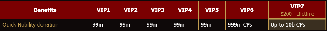 - VIP7 can donate up to 10B CPs to the NobilityBoard via the NotaryJay NPC.